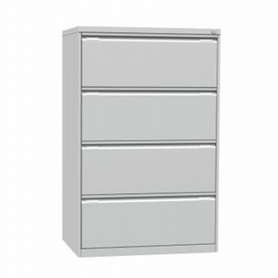 4 fiókos dupla széles (2 soros) függőmappa és karton tároló szekrény szinterezett kivitelben. Központi zárral, billenés gátlóval (egyszerre 1 fiók húzható ki)
