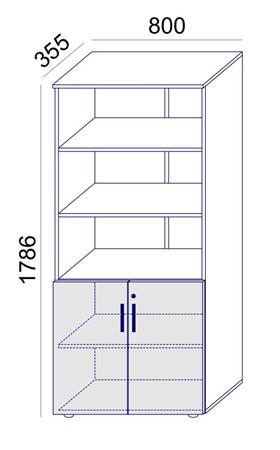 5 rendező magas, kombinált szekrény, ajtós és nyitott polcos részekkel