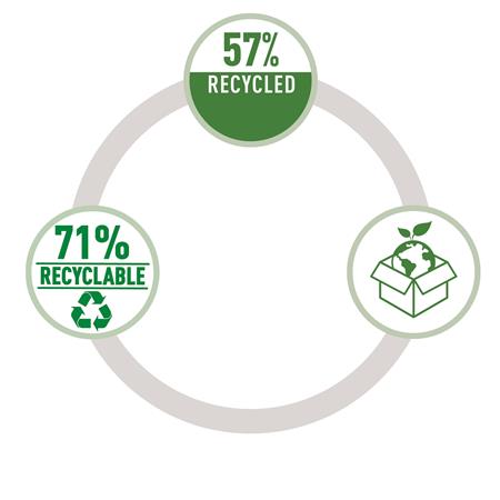 -a termék teljesen szétszedhető a különböző anyagtípusokra, 71%-ban újrahasznosítható;  műanyagmentes csomagolásban
