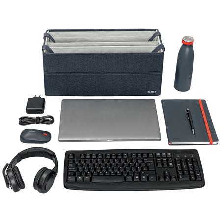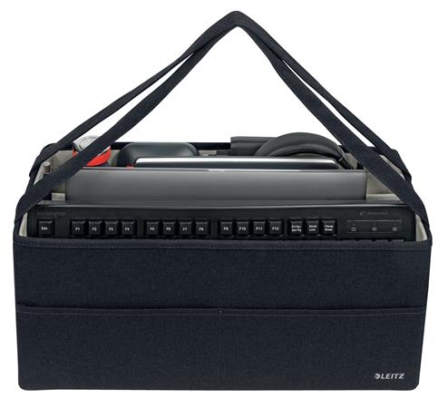 KezdőlapIrodaszerekCsomagolás, tárolásTárolódobozok, ládák és kosarakHordozótáska, 3 rekeszes, LEITZ "Fabric Hot Desking", sötétszürke