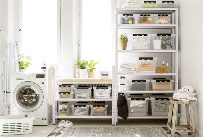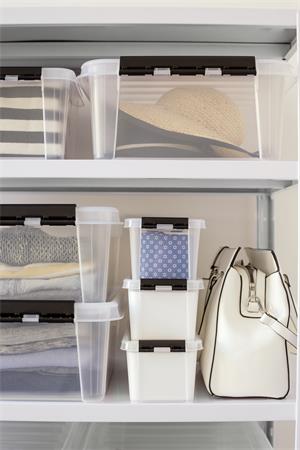 Műanyag tárolódoboz, 21 liter, fekete fogantyúkkal, SMARTSTORE "Classic 24", átlátszó