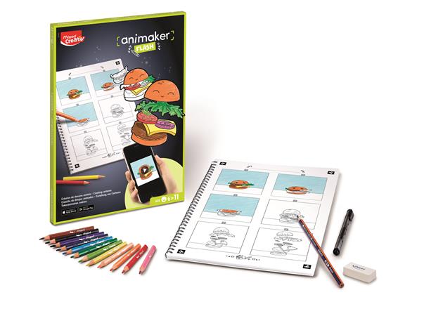 Itt az idő, hogy életre keljenek a rajzok! Az animációkészítő készlettel és az Animaker applikáció segítségével erre minden lehetőség adott!-12 féle kiszínezhető történet áll rendelkezésre a készletben, de lehetőség van saját mini rajzfilm készítésére is-az ingyenesen letölthető alkalmazással a kész rajzok könnyedén történetté alakíthatók és le is tölthetők-ajánlott korosztály: 6-11 évA készlet minden szükséges eszközt tartalmaz a rajzfilmkészítéshez: 1 db A4-es spirálfüzet 12 előrajzolt + 1 saját tervezésű mini rajzfilm készítéséhez12 db Strong Mini színes ceruza 1 db Black`Peps Navy grafitceruza 1 db fekete színű Graph`Peps tűfilc 1 db radír 1 db használati útmutató + QR kódos videó