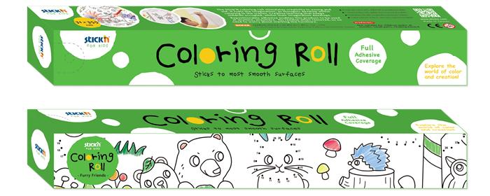 Színező tekercs, öntapadó, 31x355 cm, STICK N, erdei állatok
