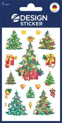 Matrica, papír, 3 ív, 76x120 mm, AVERY ZWECKFORM, "Z-Design No.52401", karácsonyfa