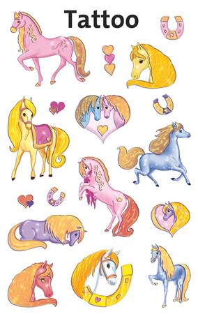 Ló tetoválás valódi ló rajongóknak! Lepje meg gyermekeit nagyszerű tetoválásokkal, gyermekei imádni fogják a gyönyörű ló tetoválást. Tökéletes ajándék, vagy apró meglepetés, amivel hazaérkezik, születésnapi partikra vagy egyszerűen arra, hogy a gyerekek játszanak.