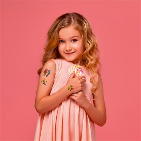 A bőr ideiglenes tetoválásai vízállóak és megtévesztően valósághűek. Egyszerűen helyezze fel egy nedves szivaccsal, és távolítsa el olajjal. A tetoválások természetesen biztonságosak, kiváló minőségben, bőrgyógyászatilag teszteltek, és külső laboratóriumok által rendszeresen ellenőrzöttek. Élvezd a tetoválásokat!