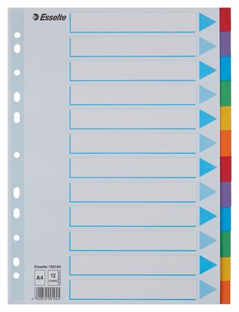 Regiszter, karton, A4, 12 részes, írható előlappal, ESSELTE "Standard", színes