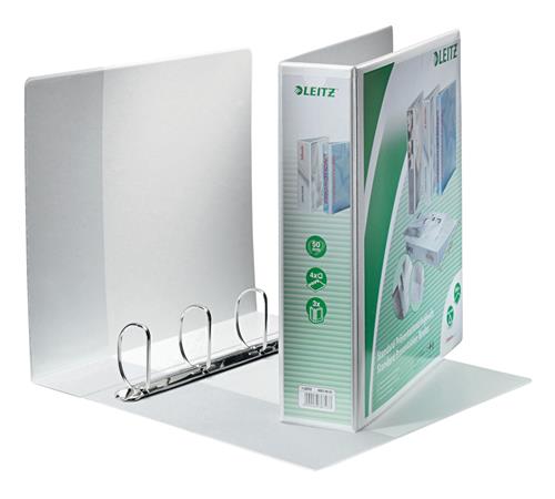 Gyűrűs könyv, panorámás, 4 gyűrű, D alakú, 77 mm, A4 Maxi, PP, LEITZ, fehér