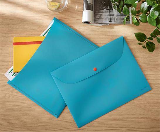 KezdőlapIrodaszerekIratrendezés, archiválásIratvédő tasakok és borítékokIrattartó tasak, 2 zsebes, A4, PP, pantentos, LEITZ "Cosy", nyugodtkék