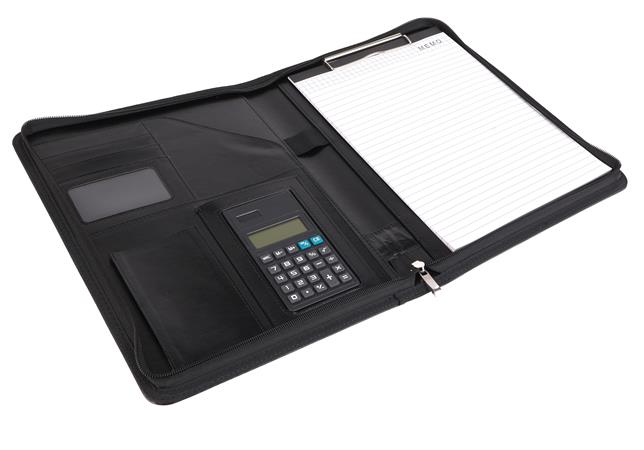 Konferencia mappa, A4, műbőr, számológéppel, fekete