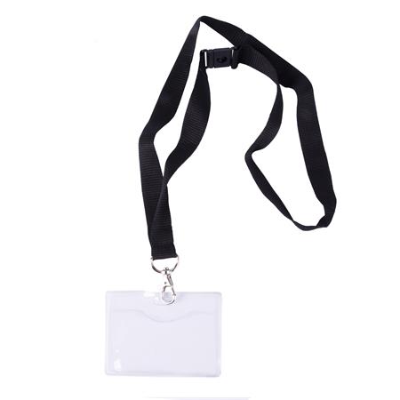 Azonosítókártya tartó, nyakba akasztható, biztonsági csattal, 90x56 mm, APLI