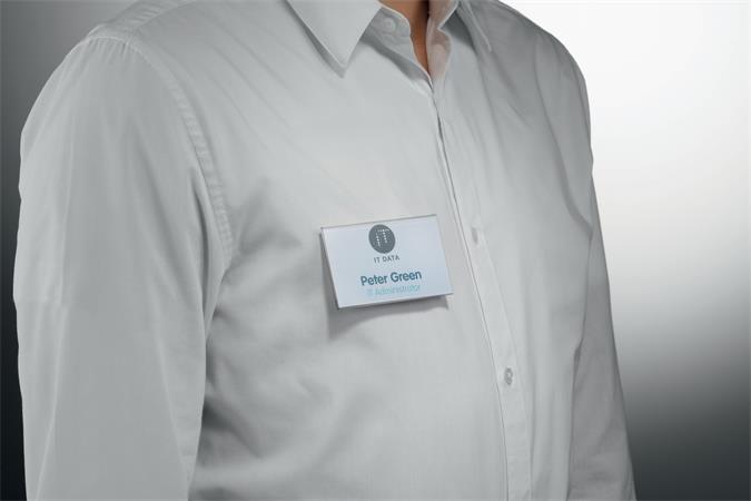 -speciális mágneses rögzítéssel (megakadályozza, hogy a névtábla elforduljon, elcsússzon vagy meglazuljon viselés közben)