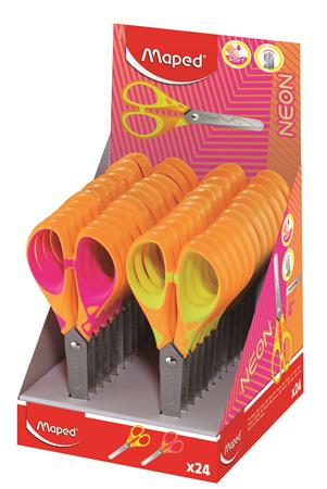 Olló, display, iskolai, 13 cm, MAPED "Soft Neon", vegyes színek