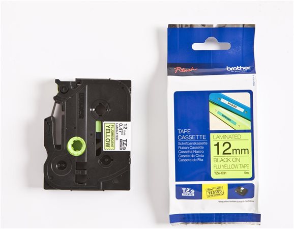 Feliratozógép szalag, 12 mm x 5 m, BROTHER, "TZe-C31" sárga-fekete