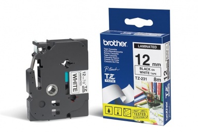Feliratozógép szalag, 12 mm x 8 m, BROTHER, "TZe-231"fehér-fekete