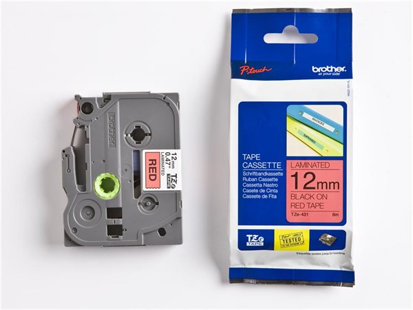 Feliratozógép szalag, 12 mm x 8 m, BROTHER, "TZe-431" piros-fekete