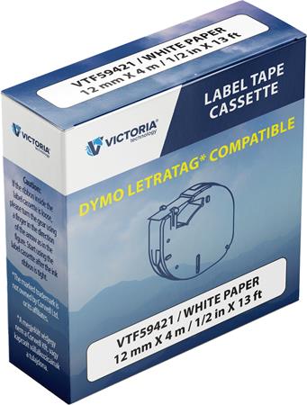 Feliratozógép szalag, papír, 12 mm x 4 m, VICTORIA TECHNOLOGY, fehér