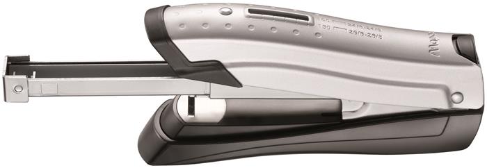 - a nyomógomb benyomásával a tűzőgép kapocsadagolója előrecsúszik, így gyorsan és egyszerűen újratölthető