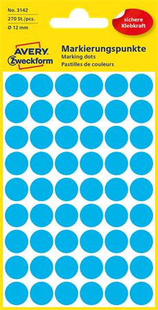 Etikett, 12 mm, kör, AVERY ZWECKFORM, kék, 270 etikett/csomag