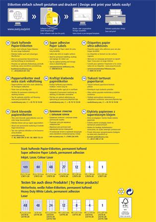 Etikett, univerzális, 210x297 mm, extra erős, AVERY ZWECKFORM, 20 etikett/csomag