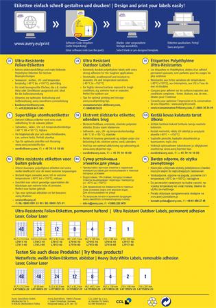 Etikett, univerzális, 210x297 mm, extra erős, polietilén, AVERY ZWECKFORM, 40 etikett/csomag