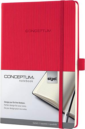 KezdőlapIrodaszerekIrodai papíráruFüzetek, gyűrűskönyvbetétekJegyzetfüzet, exkluzív, A5, kockás, 97 lap, keményfedeles, SIGEL "Conceptum", piros