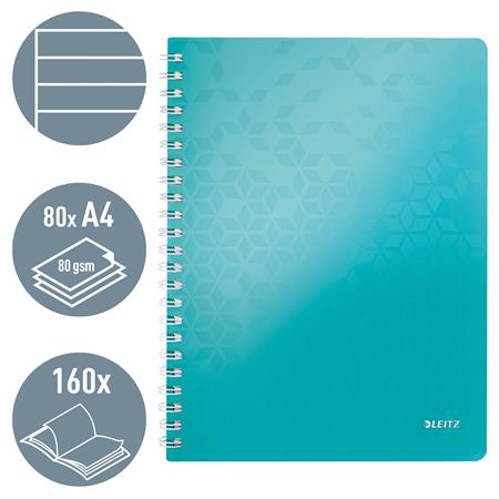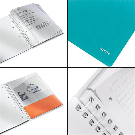 KezdőlapIrodaszerekIrodai papíráruFüzetek, gyűrűskönyvbetétekSpirálfüzet, A4, vonalas, 80 lap, LEITZ "Wow", jégkék