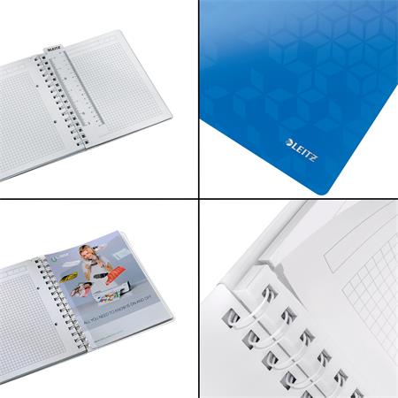 KezdőlapIrodaszerekIrodai papíráruFüzetek, gyűrűskönyvbetétekSpirálfüzet, A5, kockás, 80 lap, LEITZ "Wow", kék