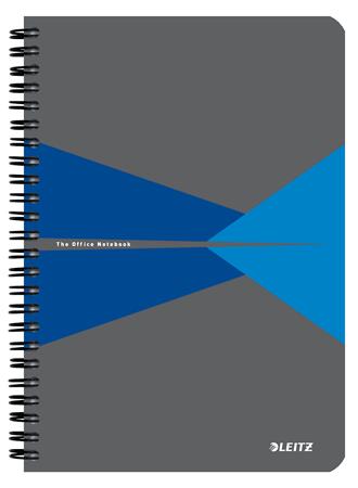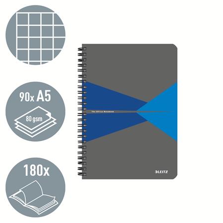 Spirálfüzet, A5, kockás, 90 lap, laminált karton borító, LEITZ "Office", szürke-kék
