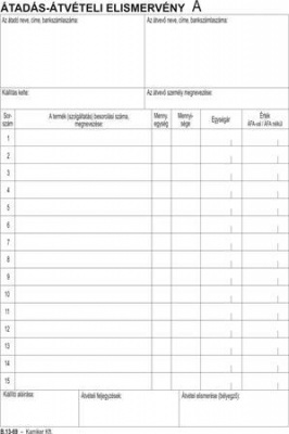 Nyomtatvány, átadás-átvételi elismervény, 25x3, A5, VICTORIA PAPER "B.13-69", 10 tömb/csomag
