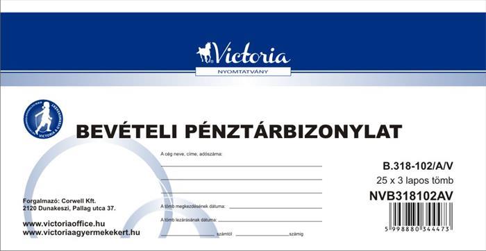KezdőlapIrodaszerekIrodai papíráruNyomtatványokNyomtatvány, bevételi pénztárbizonylat, 25x3, VICTORIA PAPER "B.318-102", 10 tömb/csomag