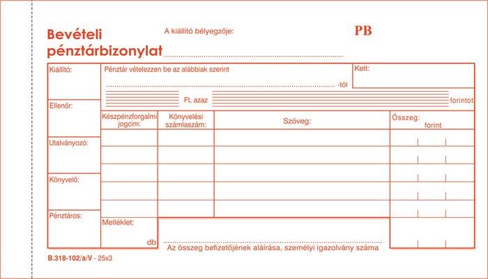 Nyomtatvány, bevételi pénztárbizonylat, 25x3, VICTORIA PAPER "B.318-102", 10 tömb/csomagAlapítvány támogatás 1 Ft