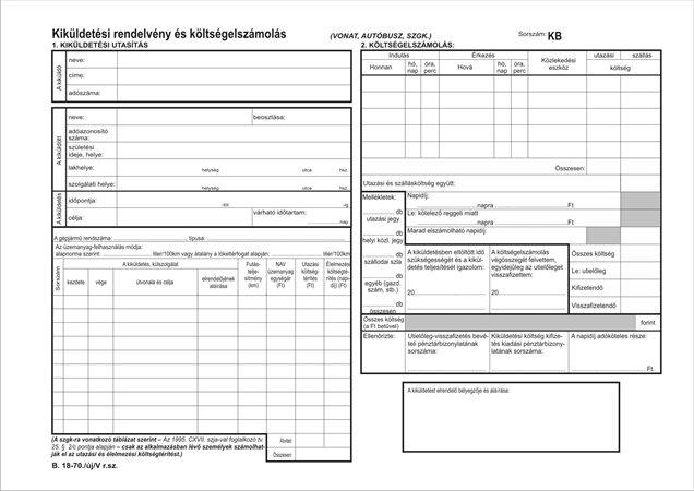 Nyomtatvány, kiküldetési utasítás és költségelszámolás, 25x2, A4, VICTORIA PAPER "B.18-70", 10 tömb/csomagAlapítvány támogatás 3 Ft