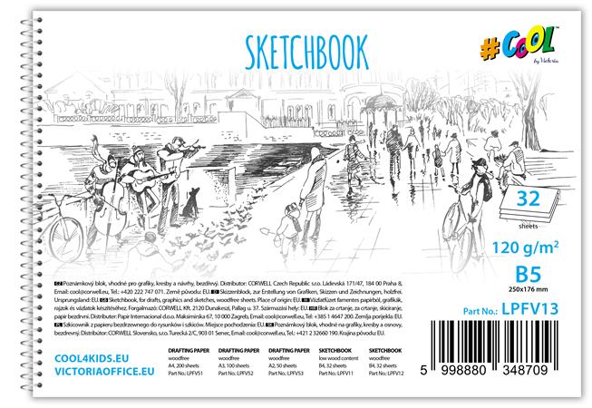 Vázlatfüzet, famentes, B5, spirál, 32 lap, COOL BY VICTORIA
