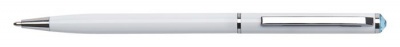 Golyóstoll, fehér "SLIM", aquakék SWAROVSKI® kristállyal, 13 cm, ART CRYSTELLA®