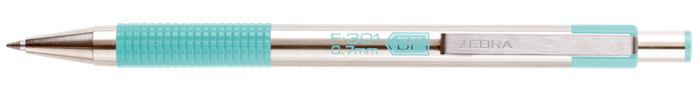 Golyóstoll, 0,24 mm, nyomógombos, rozsdamentes acél, pasztellzöld tolltest, ZEBRA "F-301", kék