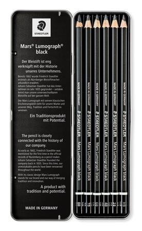 KezdőlapIrodaszerekÍrószerekGrafit- és színes ceruzákGrafitceruza készlet, fém doboz, hatszögletű, STAEDTLER "Mars Lumograph 100B", 6 különböző keménység, fekete