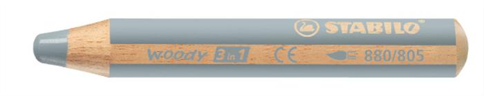 Színes ceruza, kerek, vastag, STABILO "Woody 3 in 1", ezüst