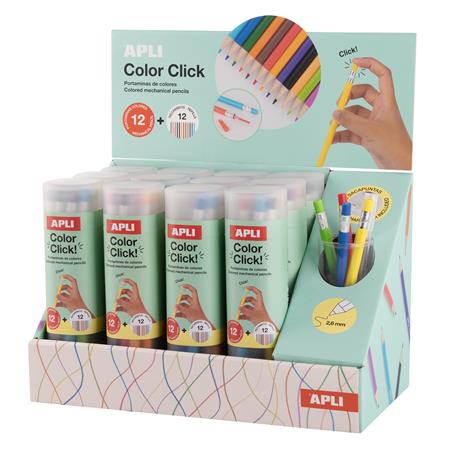 Színes töltőceruza készlet, ceruzatartóban, display, APLI "Color Click", 12 szín
