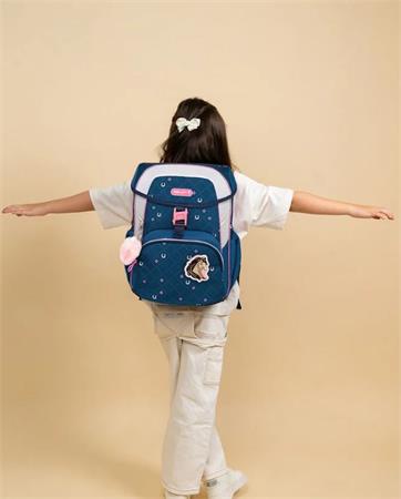 - a táska ergonomikus, párnázott hátrésze és a stabilitást biztosító mellkaspánt tehermentesíti a gyermek hátát, vállait, és javítja a táska viselésének komfortját mozgás közben is.