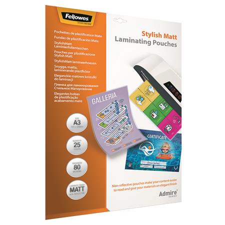Meleglamináló fólia, 80 mikron, A3, matt, 25 db, FELLOWES, "Admire Stylish"