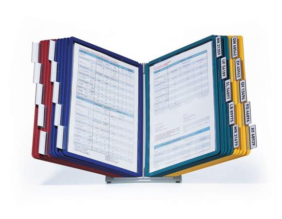 KezdőlapTechnológiaPrezentációAsztali és fali bemutatótáblákBemutatótábla tartó, asztali, 20 db bemutatótáblával, DURABLE "VARIO®", vegyes színek