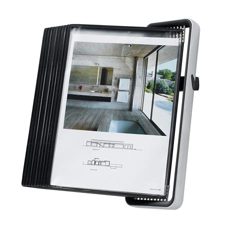Bemutatótábla tartó, fali, A4, 10 db bemutatótáblával, DJOIS "Veo", ezüst-fekete