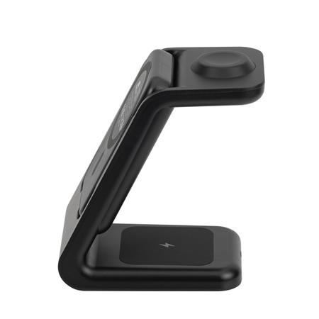 3 az 1-ben ezeték nélküli töltőállomás levehető hordozható akkumulátorral. Lehetővé teszi iPhone, Apple Watch és Pods egyidejű vezeték nélküli töltését.