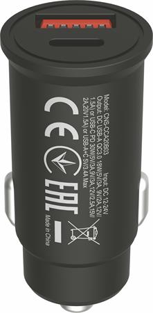 Autós töltő, USB-C/USB-A, QC 3.0 18W, PD 30W, CANYON "C-20B03"