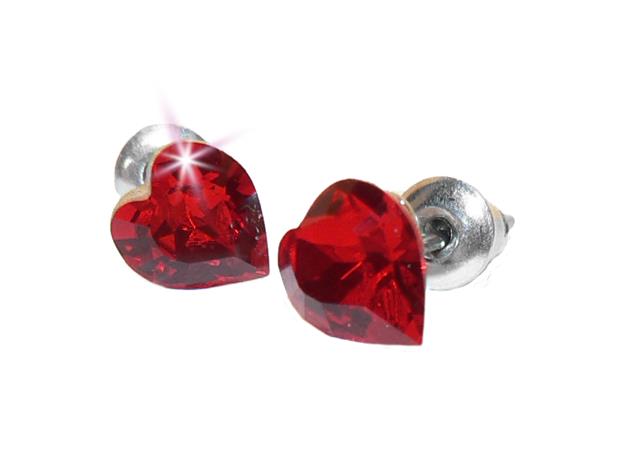 Fülbevaló, szív formájú, light siam piros SWAROVSKI® kristállyal, 8mm, ART CRYSTELLA®