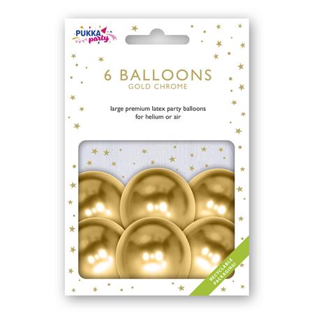 Léggömb, 30 cm, PUKKA PAD, metál arany