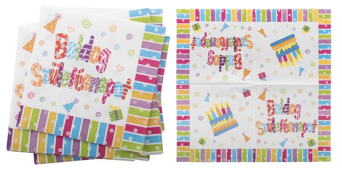 KezdőlapÜzemeltetésAjándékok és party kellékekParty kellékekSzalvéta, 33x33 cm, "Boldog születésnapot"