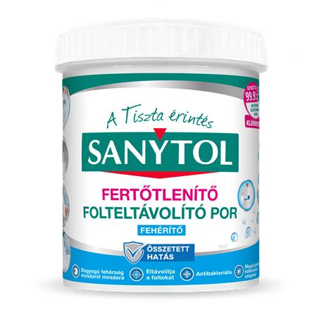 A Sanytol olyan fertőtlenítő folteltávolító port fejlesztett ki fehér ruhákhoz, amely hatékonyan távolítja el a makacs szennyeződéseket és elpusztítja a mikrobák 99, 9%-át már 30°C-on. A termék egyedülálló, enzimeken és aktív oxigénen alapuló formulája mélyen behatol a szövet szálai közé és eltávolítja a szennyeződéseket, illatosítja a ruhákat, illetve visszaadja azok fehérségét.