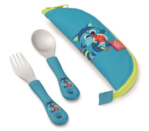 Evőeszközkészlet textil tartóban: villa, és kanál